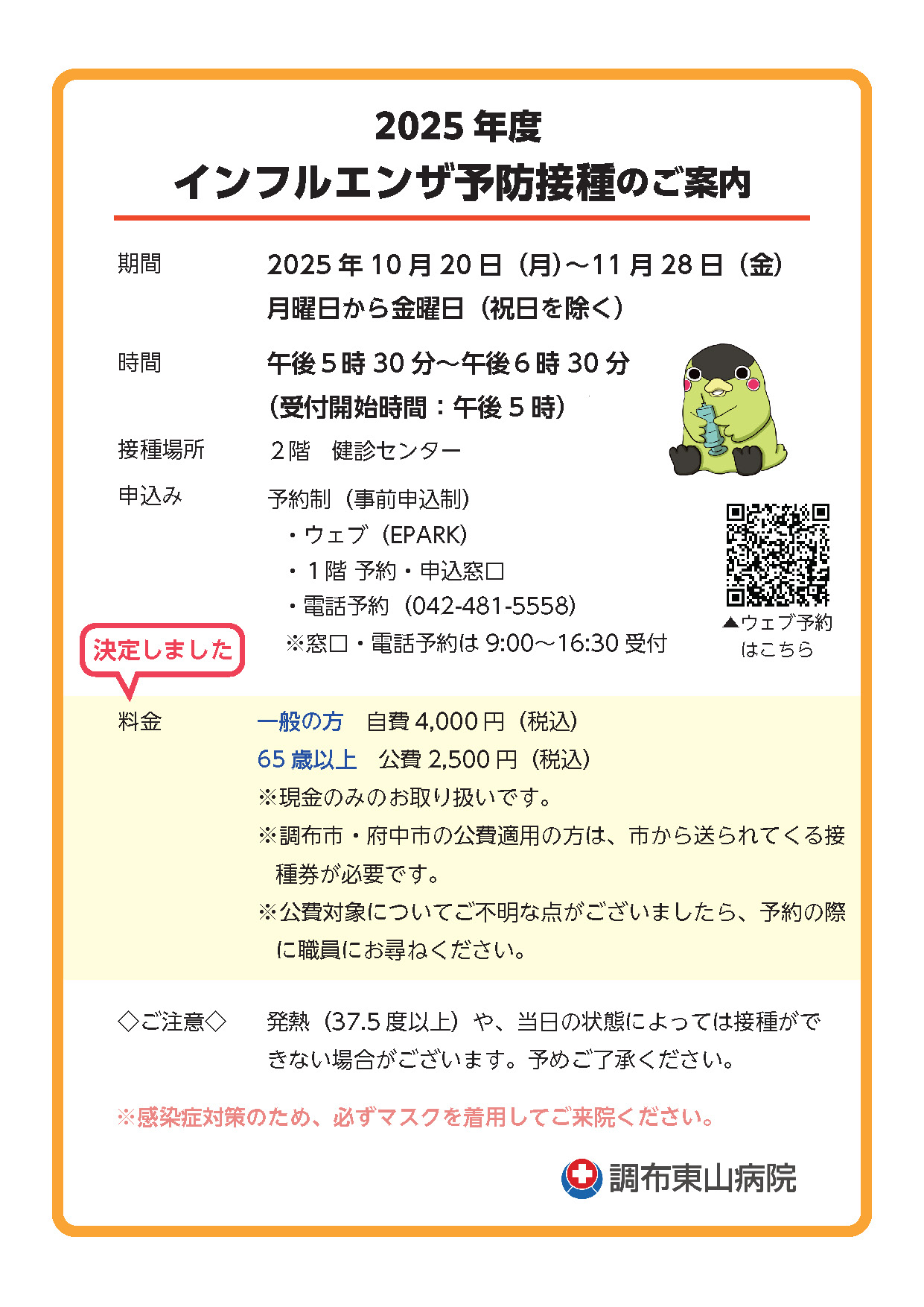 決定次第、改めて院内掲示板、病院ホームページなどでお知らせいたします。