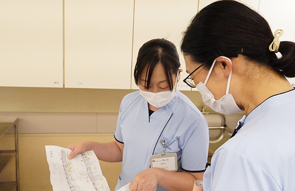 私は入職して2週間ほどで日勤に入りましたが、その際も丁寧に教えていただけました。スタッフみんなが優しく、無理なく指導してくれます。