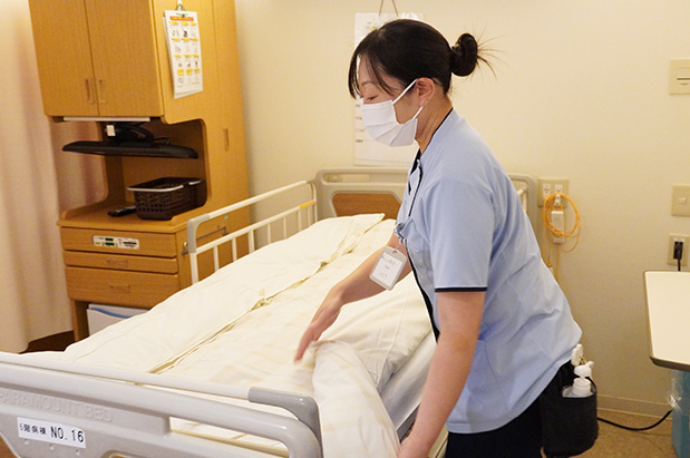 また、ナースコールが重なったときに全てに対応できないもどかしさもあります。助手業務をこなしながらの対応になるため、優先順位を意識しながら落ち着いて行動するようにしています。